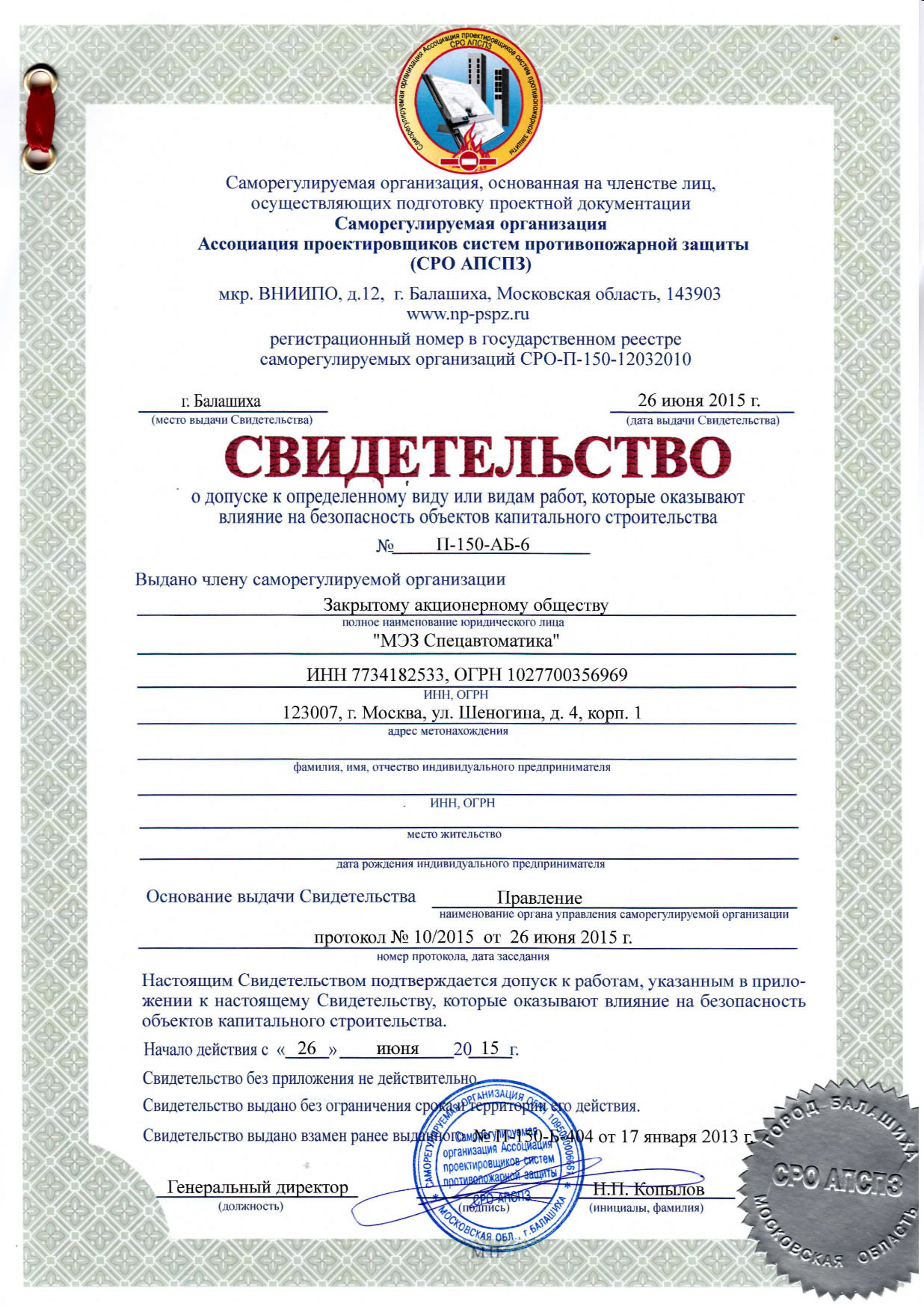 Свидетельство о допуске к определенному виду или видам работ, которые оказывают влияние на безопасность объектов капитального строительства Добавить комментарий